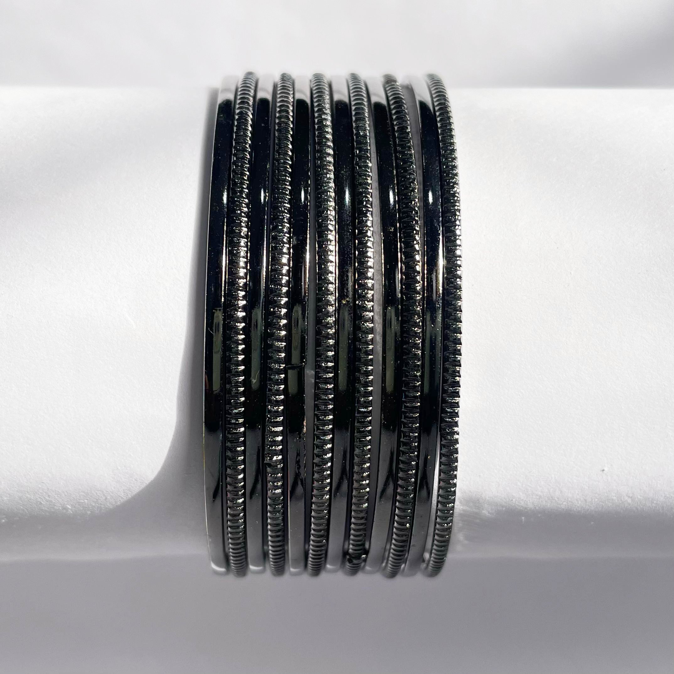 Add timeless elegance to your accessory range with this Combo Set of 12 Black Metal Bangles, thoughtfully curated for modern women who appreciate both shine and texture. This unique set includes 6 plain glossy bangles and 6 with detailed knurling work, offering a balanced blend of sophistication and traditional craft.
