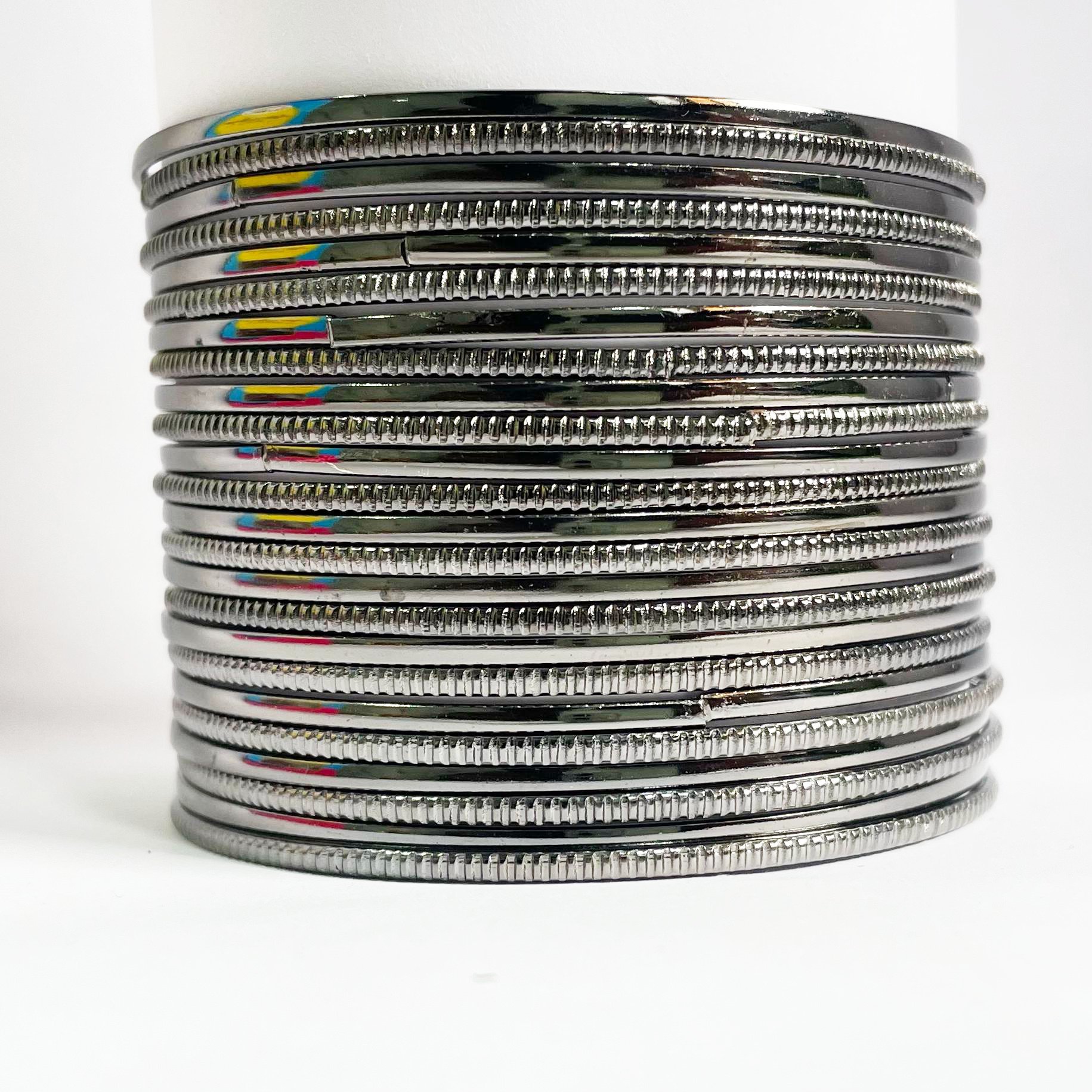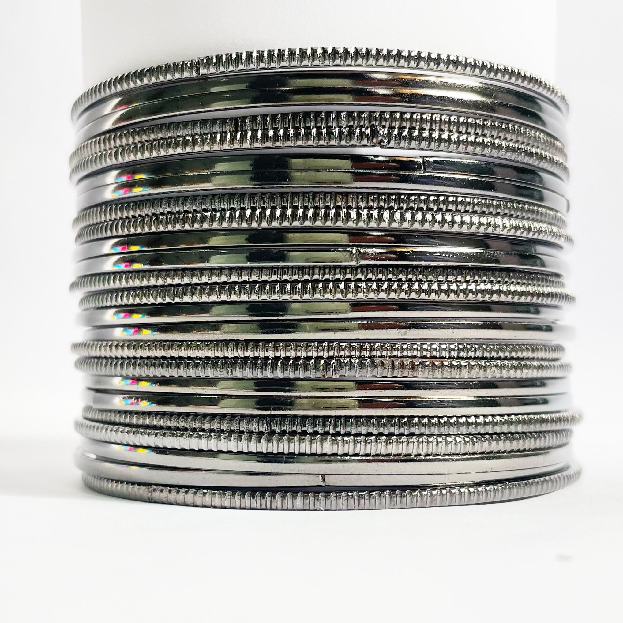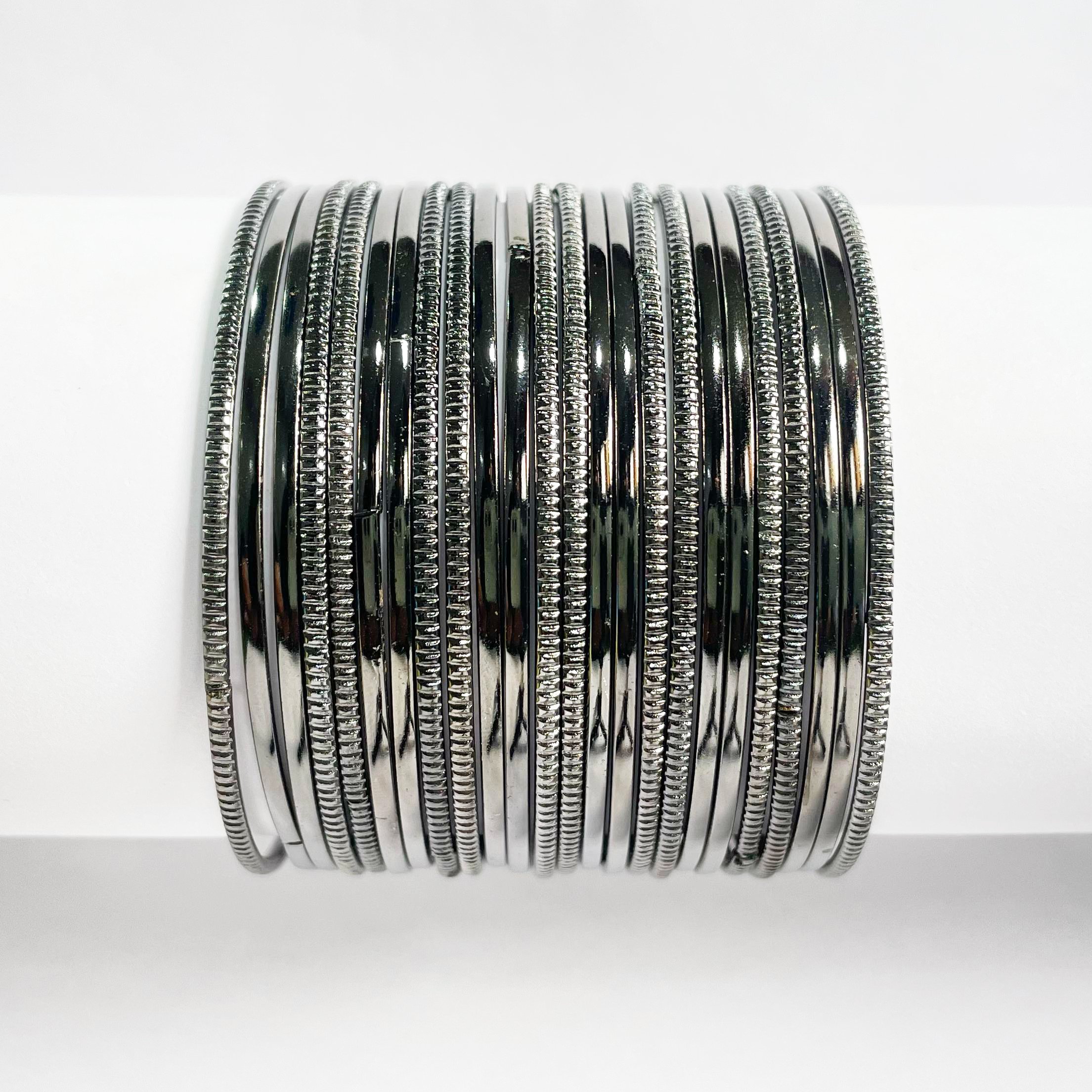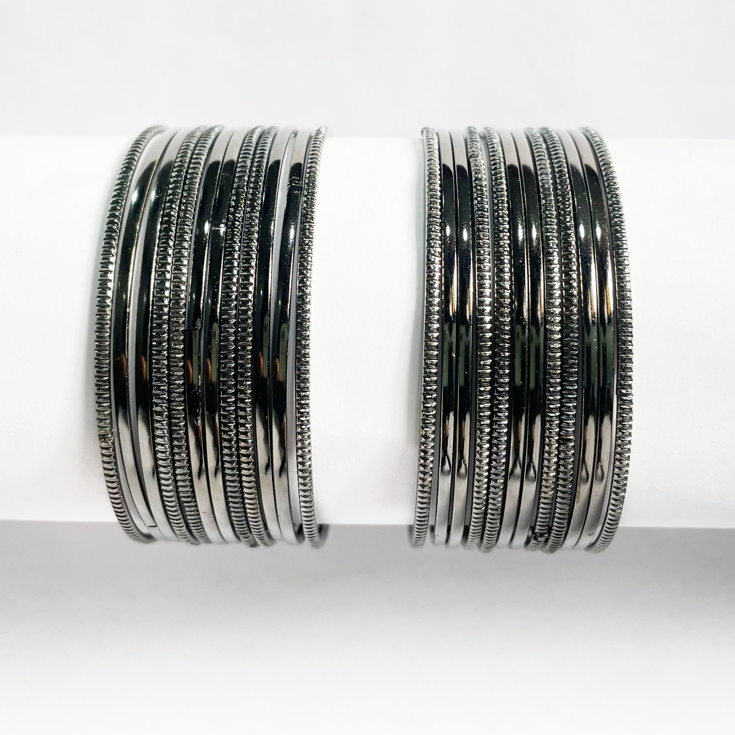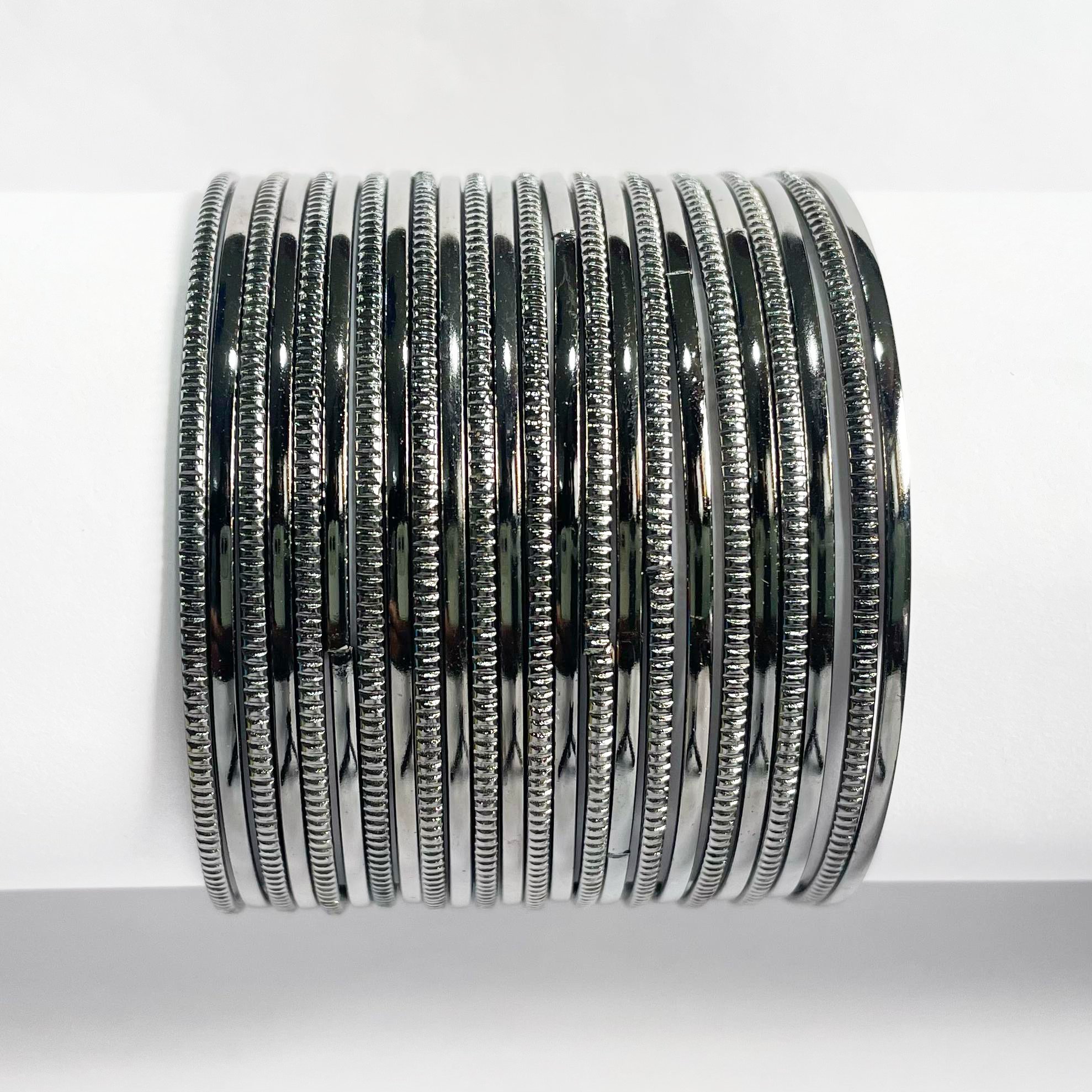 12 Knurling Black Bangles featuring fine, textured craftsmanship